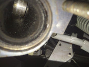 Stavio auspuh dolje da provjerim ako nije zaštopano, pa posvjetlio malo s kamerom u ispušni kanal cilindra. Sad, prvo sam primjetio da je klip izgoren postrani sve do drugog prstena, što po meni znači puštanje kompresije. Osim toga, ima par linija po klipu, ko da je ostalo zrnce pjeska ili neka špena...  (iako i cilindar i klip novi iz kutije)