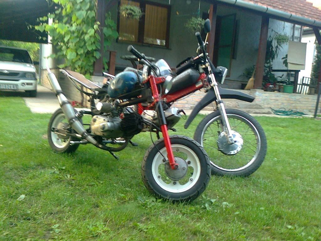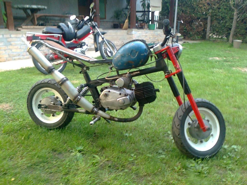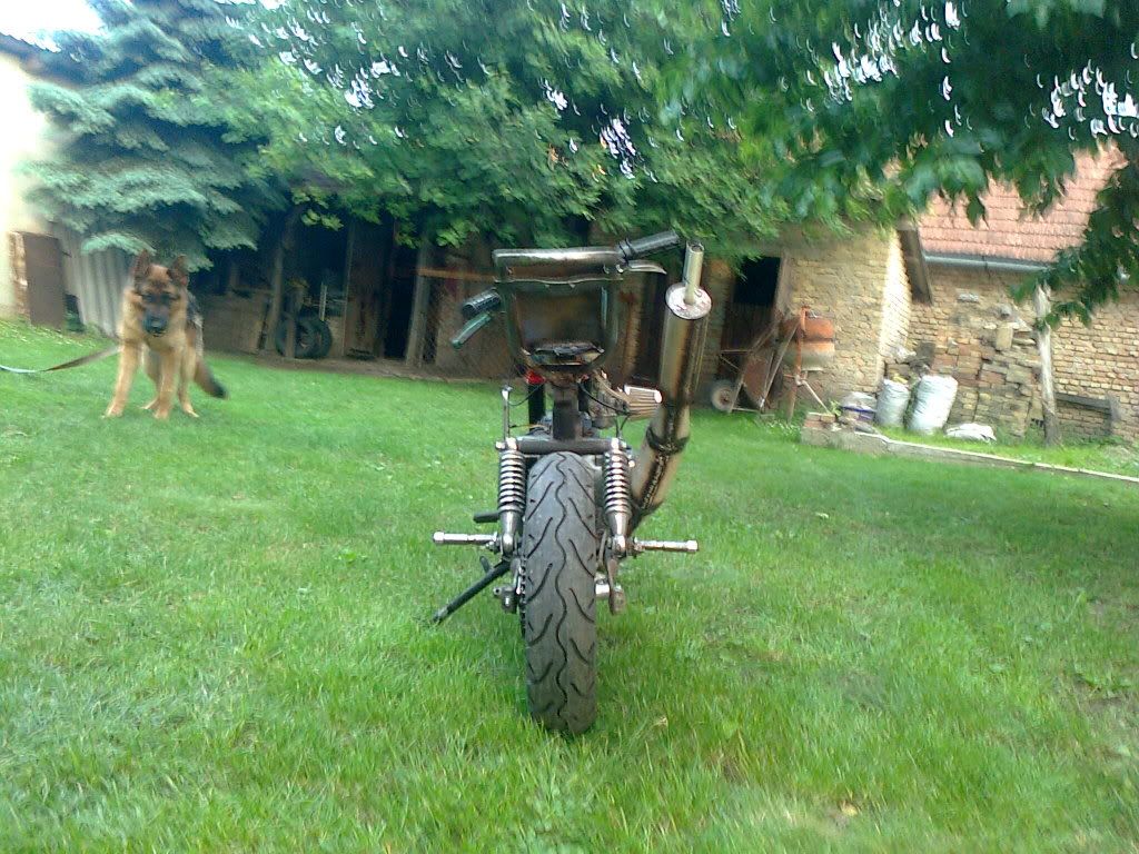 Zatim je produzena zadnja vila za nekih 10ak cm, napravljen nosac za sediste, nosac za rezervoar (rezervoar je od nsu-a nekog), prednja vila je apn-6, korman je lasta od bt-a... Motor je u fazi izrade, izgleda sad ko neka smejurija sto i jeste, u planu su neke plastile da se naprave ali kad se stigne.