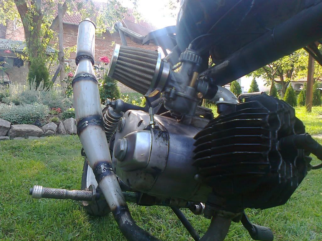 Prepravka je pocela, stavljena je na njega masina od bt-a sledeceg setupa- klip fi40mm, kanali radjeni 24/67/35 (nemojte me drzati za rec, posto za visinu prelivnih nisam siguran zaboravio sam), auspuh po merama od kros juniora, karb bing 19, prenos 12/27.