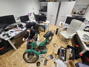 Prvo je bio par dana zavezan za banderu u dvoristu studentskog doma, onda je pao guranac 2km do firme, pa je stajao ispred jos par tjedana dok mi Futurist nije doniral svoj stari tecno krul koji je isto puknut, ali manje. Sad je na motoru ali moram ga ovih dana zavarit.