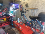 za početak dvije slike -jedna je dok sam montirao makinu gore di se vidi da sam ugradio poklopac paljenja od starijih sprintova jer mi je lijepši od ovih plastičnih koji su na mlađim godištima a druga je sa jutrošnjeg podešavanja motora i prve ozbiljnije vožnje od  oko 20 km-na kraju je ispalo da dell ne trokira kad se stavi dizna od 72 u kombinaciji sa plastičnim poklopčićem ali i dalje bez mrežice unutra.