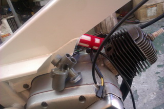 idemo dalje, usledila je montaža karburatora i auspuha, u ram ulazi i novi filter, ovakav još nismo viđali, ima 6 redova neke pvc mrežice, nauljeno, spremno.. auspuh je isto morao sa molitvama da naiđe, to je ovaj Laser koji je kopija originala u sebi nema luletinu, već je spakovan i zavaren na tačnu dužinu, prva pregrada je do pola otvorena, recimo da ja to ne bih tako radio, a druga je isto prisutna samo nema cevčice... bilo kako bilo ide gore, malo prirubnica nije 100% kompatibilna bila, ali smo je ubedili, evo navikavam se polako na NON plug and play operacije...