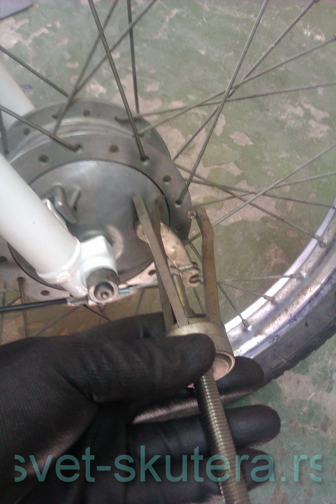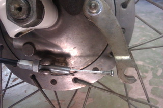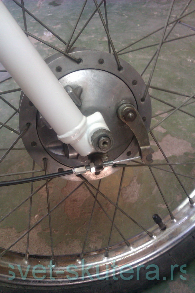 i prednja kočnica je super nategnuta, jer sam već spomenuo da su pakne bile predebele i da sam dosta šmirglao dok ih nisam uspeo ubaciti.. sad još da povežemo sajlu, ali trebalo je podesiti nosač, fabrička postavka nije odgovarala, kratka je sajla za tu poziciju pakni...