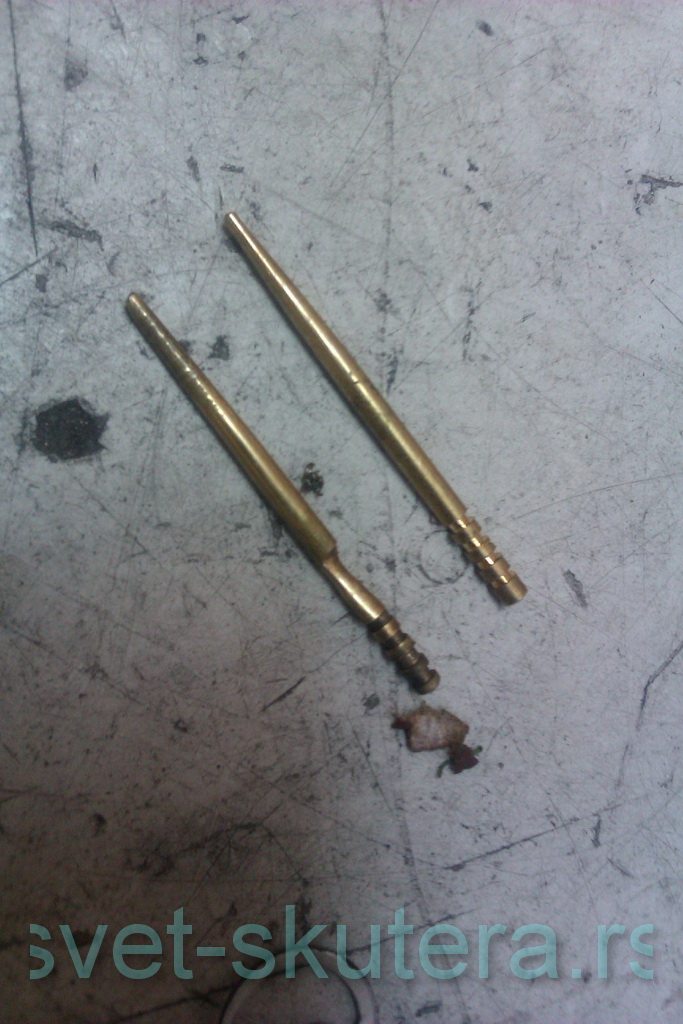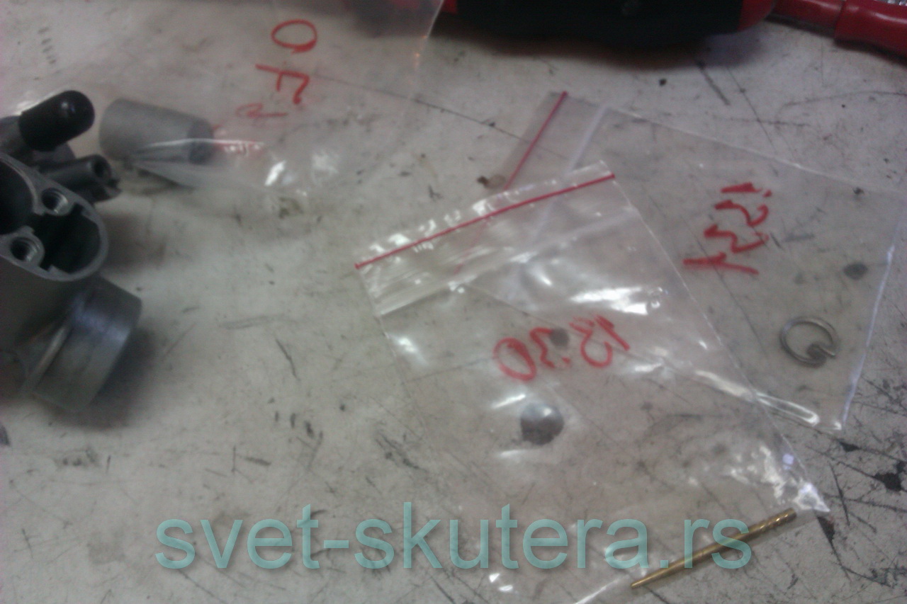 za karburator smo kupili novi šiber, iglicu i seger osigurač kojim podešavamo visinu iglice, tj. nivo goriva na srednjem otklonu... pah ne znam da li da vraćam stari osigurač puknuti, ili ovaj novi krivo štancovani...