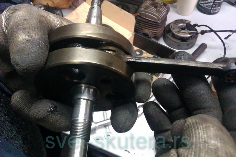 što se radilice tiče, dugo sam razmišljao da li da vraćamo koparsku, i da li da se upuštam uopšte u menjanje velikog ležaja na klipnjači, ali me kum ubedio da kupujemo novu, i to najbolju na tržištu... tako je koparska ostala kod mene na polici, zapravo kupio sam sve koje su bile u motobike shop-u , radi uporedbe, tako ih sad imam nekoliko, ali je definitivno ova MEC Eur delovala najkulturnije...  videćemo dokle će raditi, mada nije nešto forsiran stepen kompresije, a i eksploatacija neće biti nešto posebno agresivna..