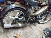 cizme su taman i dodaju taj rat look motoru bas zbog velicine jer nema rupe pa motor izgleda teze ili jace (barem meni) , prednji stapovi su kraceni u smislu da sam ih spustao na trokutima , i to sta kazes steta ih je kratit neznam kako mislis , nisam ih rezao vec samo na trokutu spustio , spustao sam ih da motor bude sto nizi naravno da pratim hod cizme , to sam testirao naravno tako da sam stisnuo kocnicu i skakao po motoru da vidim do kud idu cizme , i kao sto kazes motor mora bit ljep meni , a meni je ovako ruzinav najljepsi i nebi ga dao nikom nikad ,