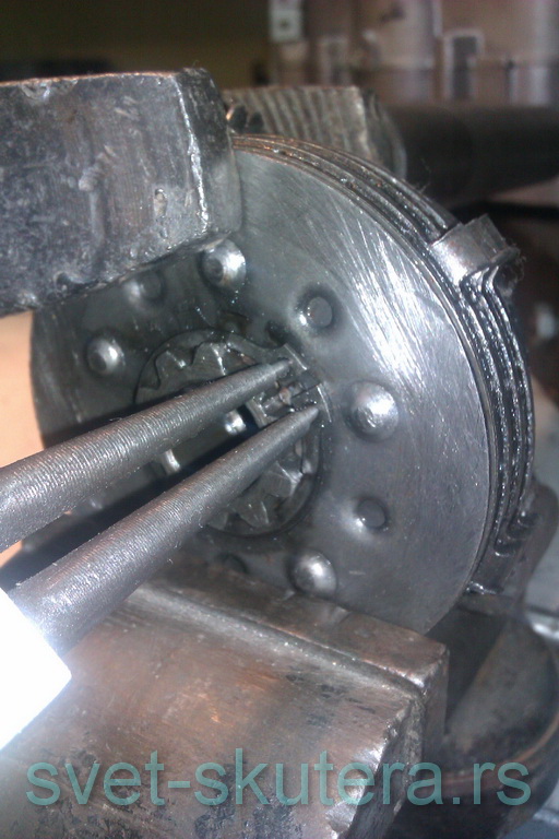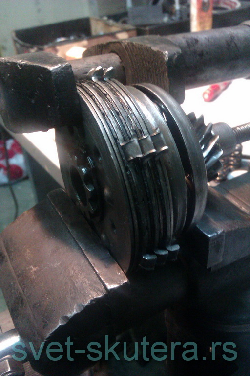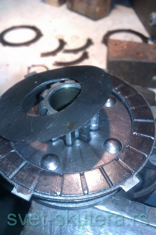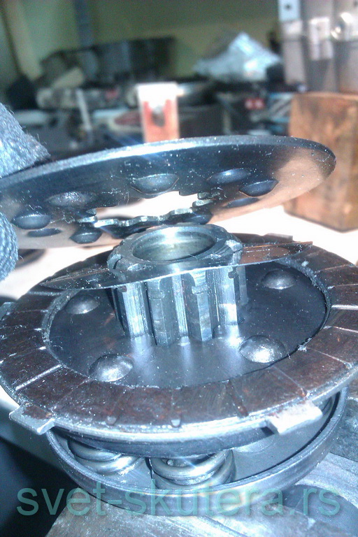da nadodam da lamele centriram na kraju da budu u osi u odnusu na prorez na korpi tako da maticu koja napinje kvačilo pritegnem toliko da prstima mogu lamele pomicati-potom nataknem sklop na korpu kvačila i okrenem par puta kvačilo da mu simuliram proklizavanje  i tada otpustim maticu-i sve je u centru namješteno prema korpi 100 posto