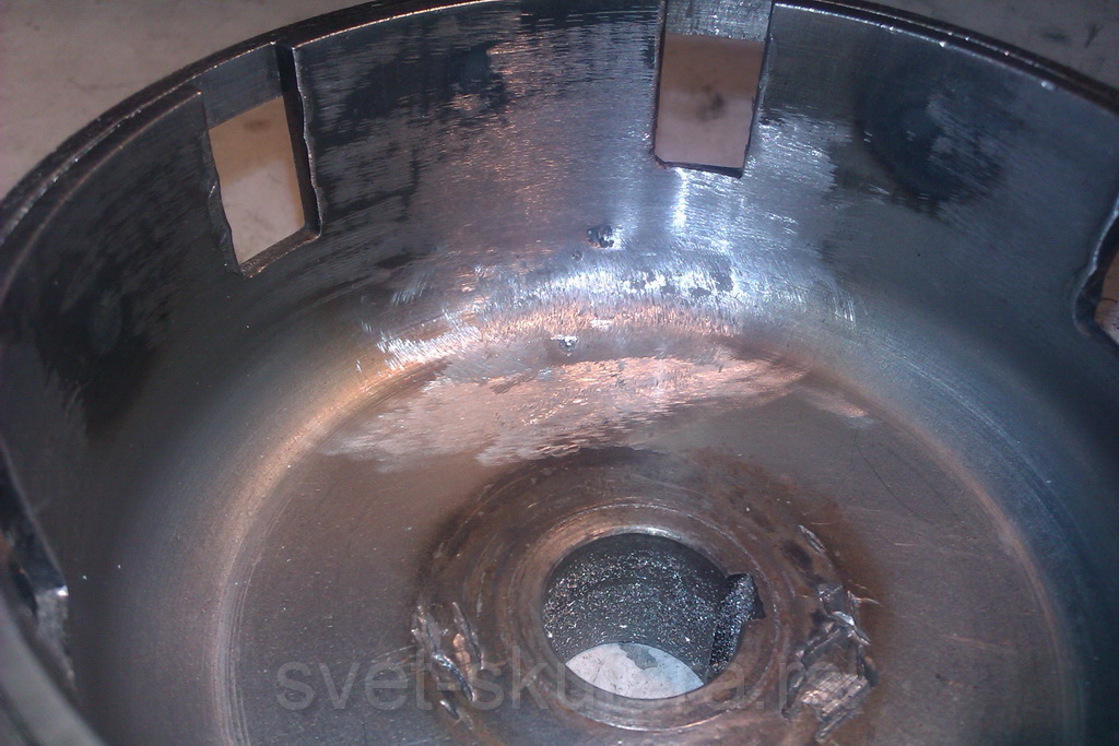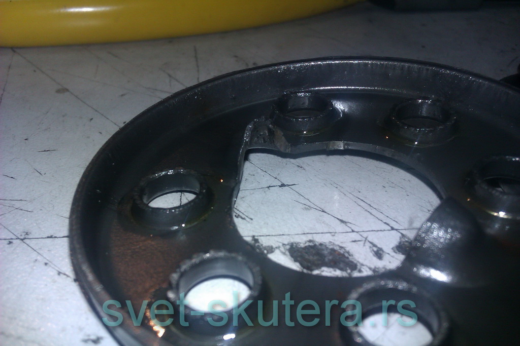 ova korpa sa deve se je otvorila od naprezanja i centrifuge-to se rješava preventivnim varenjem prstena uokolo -samo tada je malo teže ubaciti kvačilo unutra jer zapinju izbočine lamela
