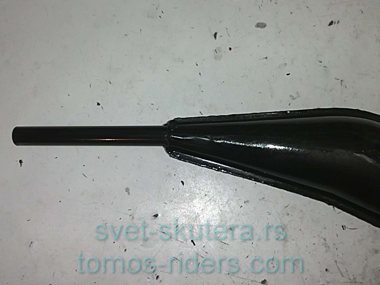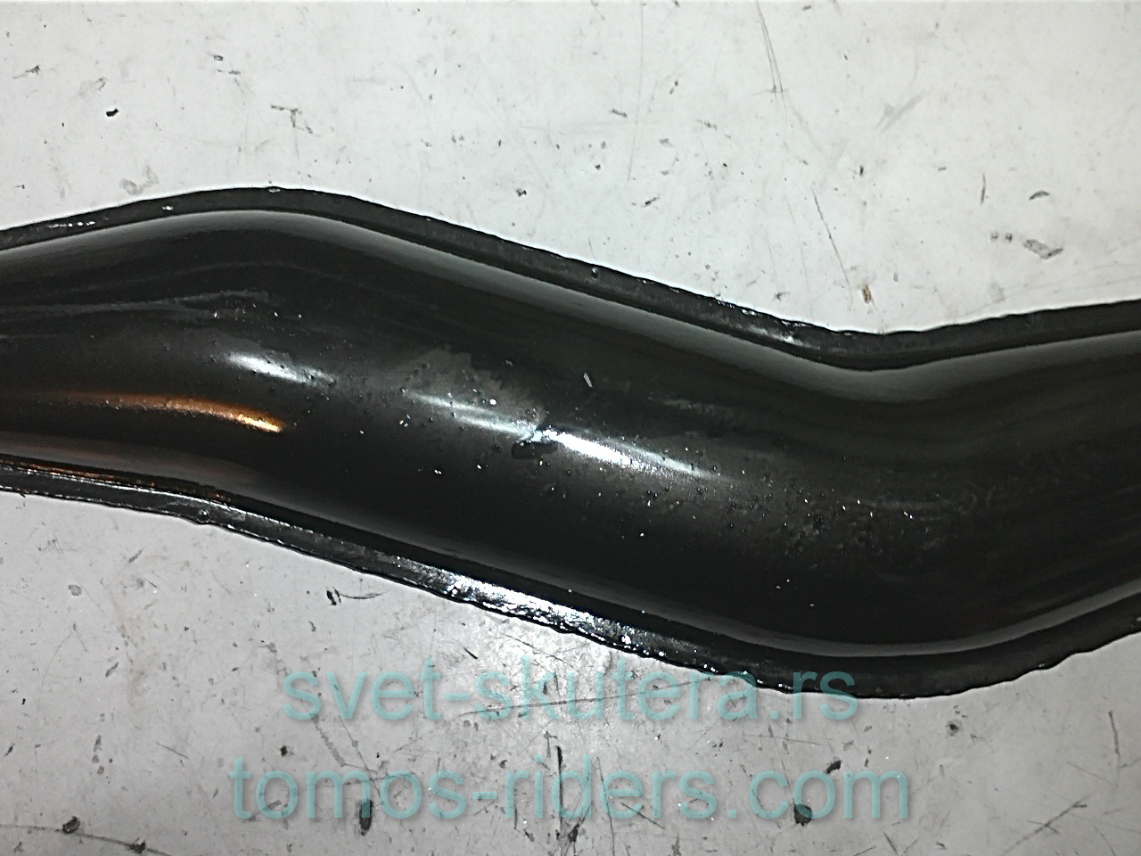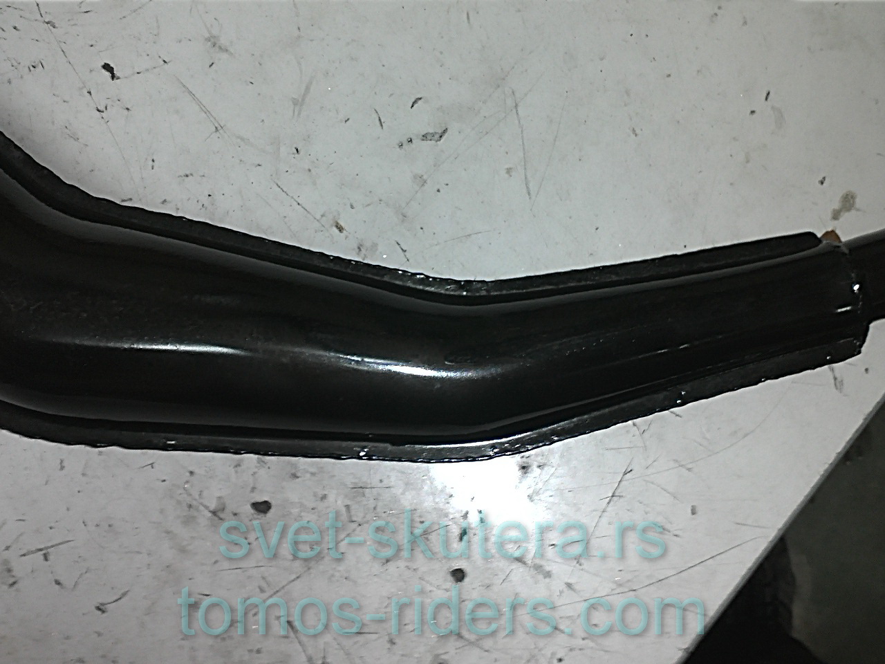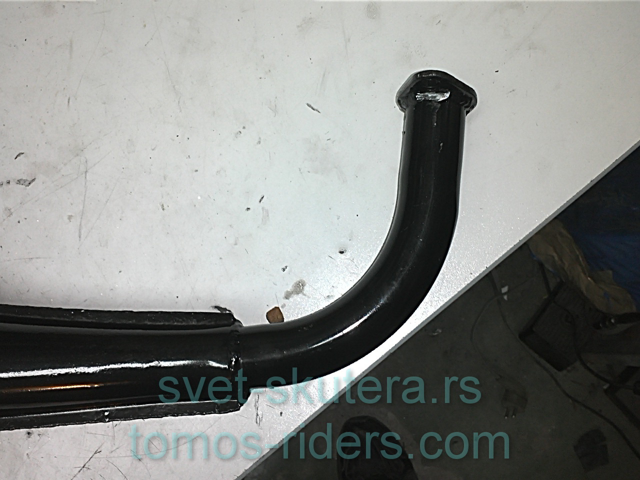 Nosača kao i prigušivača nema, vrv se u daljoj proizvodnji i to priprema, ali meni to u polufabrikat izvedbi nije bilo ni bitno. Prepoznaćemo njegov stil izrade auspuha koji je od presovanog lima dve polutke, povaren po šavovima...