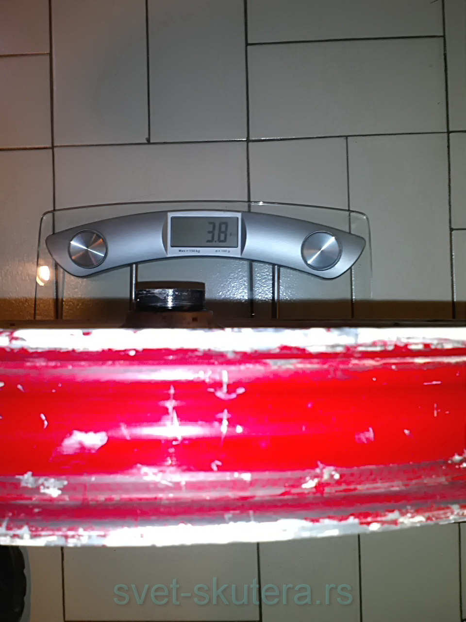 izmerio sam prednju sa sve diskom i težina joj je 3,8Kg