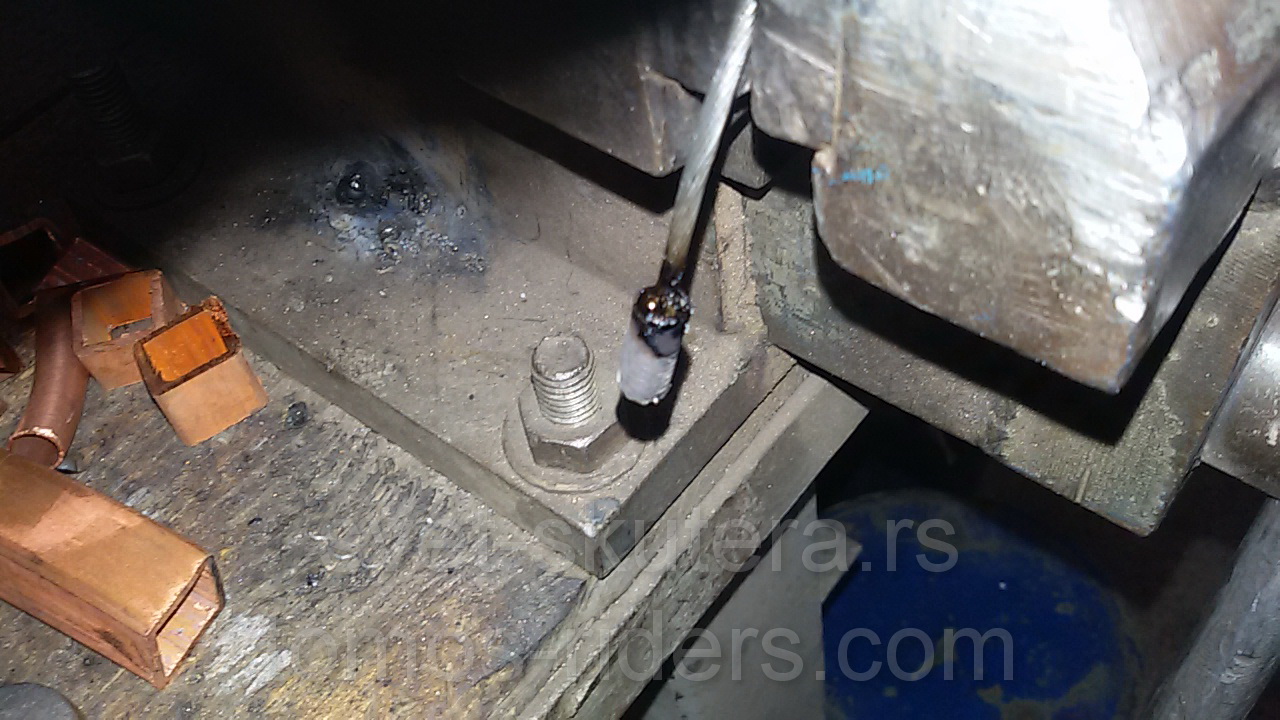 Naredni dan sam pripremio čeličnu bolcnu 16mm spoljne mere i 8mm unutrašnje, i malo pobrusio sa gornje strane, povario sam i ove male prohrom nosače samo probno.. sledi montaža