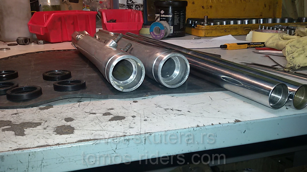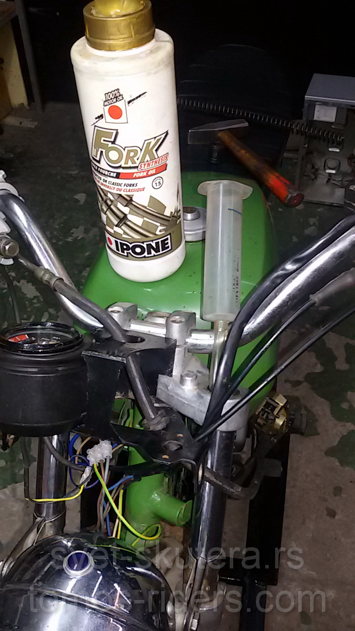 i nakon onog ispravljanja na video zapisu gore koji mi je potrajao 3 dana, vile-čizme-klipići-opruge isprane izduvane, novi semerinzi ubačeni, sve sklopljeno i nasuto 15w ulje za vile, to mi je najtvrđe koje imam, 150ml po štapu, u papirima piše SAE 30 videćemo kako će se ovo ponašati