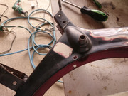 Nakon sto sam ocistio rezervoar od hrde, krenuo sam sa skidanjem boje (treci sloj crne, drugi sloj crvene i originalni sloj bijele).