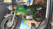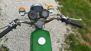 Paljenje je 6v sa dodatnom spulom za potrosace. U crnoj kutiji iznad kurble se nalazi dioda, nekakav termicki regler, automat za zmigavce i 5 celija 1.2V Ni-Cad clanaka spojenih u seriju. Tiskana plocica je strunula van reparacije, ali se uspjela izvuci shema. Zuta, dolazna zica iz paljenja prolazi kroz diodu koja poluvalno ispravlja struju, zatim kroz termicki osigurac (koji glumi primitivan regler) ide na celije. Celije imaju zaseban izlaz iz kutije, a spajaju se i na automat za zmigavce. Vrlo interesantno, ali nazalost, neispravno.
