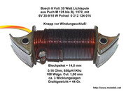 Tekst je na nemackom jeziku ali da se lako razumeti. Broj namotaja i debljina zice.  Cak sta vise ukoliko ima mesta na kalemu, moglo bi da namota jos koji zavoj pa bi mozda dobili i 40+ Watti. Znaci u tom slucaju dobili bi dovoljno snage za prednje svetlo od 25w i zadnje od 10w. Sto priznajem nije bog zna sta ali ipak bez prevelike investicije bi dobili malo bolje svetlo.