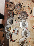 Na ovim crnim magnetima pise 6v17w i imam jedan 6v19w (barem mislim da tako pise), i na toj ploči ima namotaj za stop svijetlo. Imam jednu ploču koja ima dva namotaja (jel to 12v ili)? Imam takodjer neki cudan namotaj (vidi se na slici). A za ove magnete ne znam ni od cega su samo znam da je unutarnji promjer premali za ploču. Jel se može kaj od ovoga pripasat i složit da imam 12v paljenje i jel moze to raditi sa 6v magnetom?