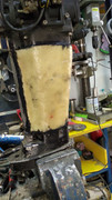 kanal na koji sida orginal čizma očistija četkom,odmastija i u deblelo namaza silikon tj više je guma kad stisne,pustit ču jos da se osuši i priko svega po ovom djelu di je čizma ispilana (osovina)zalipit plastikom da čizma bude u komadu i da dodatno drzi za tijelo pente.