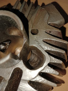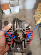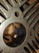 Moguće da je samo pretanak vanjski dio pregrade, zaokruženo crveno. Ako je pretanko, ne može brtvit. Pokušaj slikat unutrašnjost preljevnih, plava strelica. Pod nekim svijetlom, da vidimo obradu, jel ima kakvih stepenica... Napravi portmap cilindra, ako ne znaš što je to, u google upiši portmap cilindra tomos riders. Postoji mogućnost da to još vozi. Čak i nakon iduće specijale i onih iza, čak i kada se pregeade u potpunosti sruše. To je samo i isključivo samo da nema stepenice unutar kanala, originalni luk i da nije dirano ništa unutar cilindra, na plaštu.
