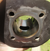 Prvo, malo sam proširio prolaz za preljevne u suknjici i klipu. Sve fino zaoblio i zagladio. Neznam kolko će, ako išta, doprinijeti protoku, ali barem će to dodatno olakšati klip malo.
